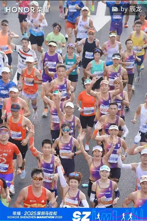 当终点拱门映入眼帘,海滨广场人声鼎沸。伴随着志愿者的呐喊与观众的欢呼,这支紫色方阵齐齐冲线,有人振臂高呼,有人激动落泪,汗水浸透的战袍下,是掩饰不住的激动与荣耀。