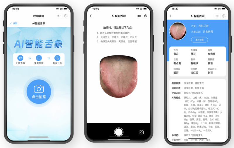 三是中医舌诊分析仪。利用高精度摄像头与图像识别技术采集数据,由模型准确识别和分析舌苔的形态、颜色、纹理等特征,实现九种体质辨识并生成个性化体质报告与调理建议。目前,已在河北省三院、浙江中医药大学、胡庆余堂、方回春堂等多家知名中医机构投入使用。
