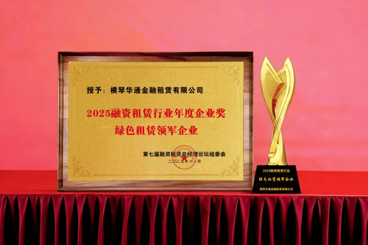 横琴华通金融租赁有限公司凭借卓越的经营业绩、突出的行业贡献和鲜明的专业特色,荣获“2025融资租赁行业年度企业奖——绿色租赁领军企业”。公司坚持“服务实体,创造价值”,聚焦城市民生、清洁能源、医疗大健康、工程装备、先进制造业务,专注核心盈利能力建设,优化收入结构,积极践行普惠金融,彰显企业担当。