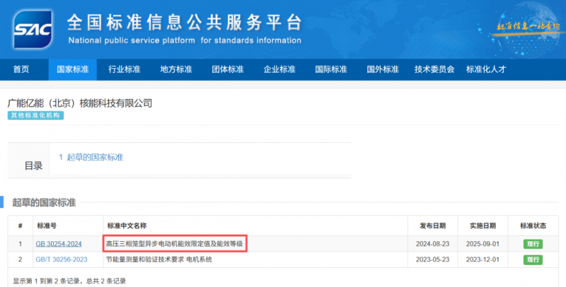 2025年9月1日,由国家标准化管理委员会主管,全国能源基础与管理标准化技术委员会执行,广能亿能(北京)核能科技有限公司参与编写的国家标准《高压三相笼型异步电动机能效限定值及能效等级》GB 30254-2024正式实施。作为节能电机行业的领航者,广能亿能核能不仅强化了其在电机技术领域的影响力,也为行业的节能减排、绿色转型提供了坚实的技术保障。