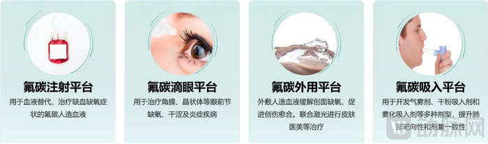 当前,公司正着力打造基于氟碳医学的四大创新药物平台(注射、滴眼、外用、吸入)及其上游氟碳原料的规模化供应。基于独特的惰性和溶氧性质,氟碳医疗产品可广泛用于治疗缺氧、氧化应激相关的各类损伤及炎症,以及器官组织的临时填充、保护和润滑。