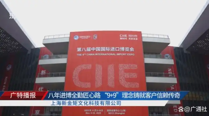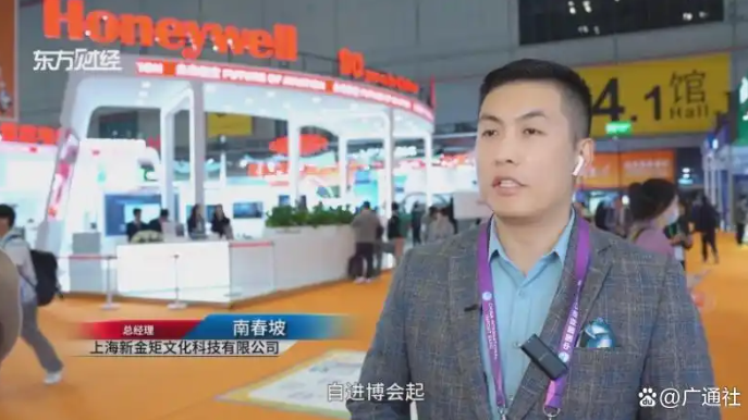 上海新金矩文化科技有限公司总经理南春坡介绍:“自首届进博会起,我们已连续8年服务进博会,今年为霍尼韦尔、默沙东、宣伟、爱尔康等世界500强企业及加拿大国家展台量身定制展台,上个月公司完成增资升级,正式转型为文化科技公司。依托AI算法与创意科技,实现展台设计、项目管控、效果推演,一站式云端完成,平均工期缩短30%,成本降低20%。新金矩以科技赋能中国速度,期待与全球展商共赴第九届进博会金色之约。”