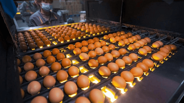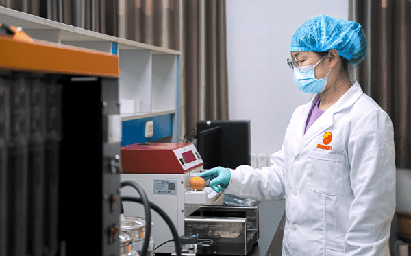 在晓鸣股份检测中心,工作人员进行蛋品检测
