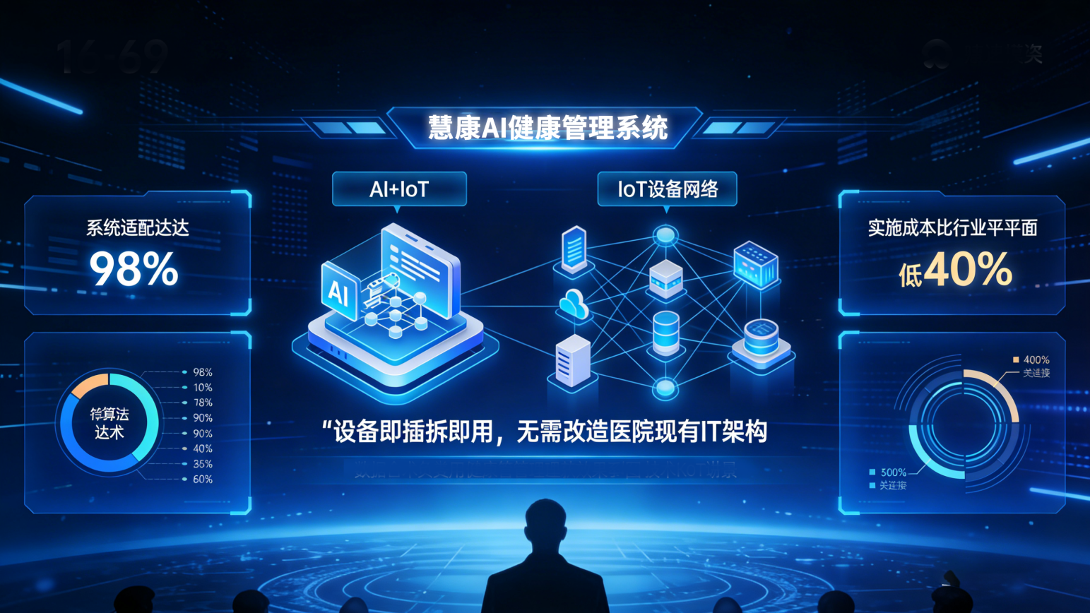 慧康AI能快速落地的关键,在于其独特的技术架构。我们采用'AI+IoT'双核心技术,设备即插即用,系统无需改造医院现有IT架构。慧康AI技术负责人解释道,这种轻量化部署模式使系统适配率达98%,实施成本比行业平均水平低40%。