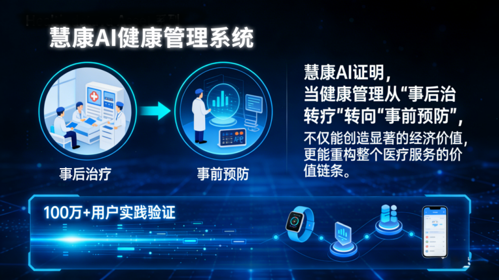 医疗行业分析师指出:慧康AI证明,当健康管理从'事后治疗'转向'事前预防,不仅能创造显著的经济价值,更能重构整个医疗服务的价值链条。随着100万+用户的实践验证,这套系统正在重新定义健康管理的效率标准。