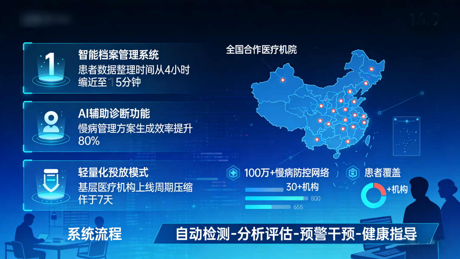 截至目前,慧康AI已与全国30余家医疗机构达成合作,构建覆盖100万患者的慢病防控网络。北京协和医院慢病管理中心主任在学术会议上指出:AI预警系统使我们的脑卒中前兆识别提前了3-5天,这意味着更多患者能得到及时干预。