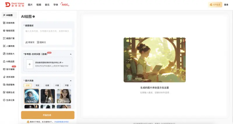 基于这些洞察,卓特视觉开始布局AI技术研发。随着深度学习技术和大型语言模型的突破性进展,公司加快了创新步伐。2024年,卓特视觉推出了在线AIGC工具。该工具利用先进的生成式AI技术,允许用户通过简单的文字描述,快速生成高质量的图片、插画、设计元素甚至成形的中文海报。这项服务极大地降低了创意设计的门槛,让即使没有专业设计背景的用户也能快速制作出精美的视觉内容。