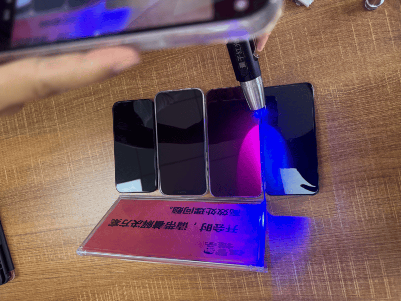 这些效果并非空谈。据中国科学院宁波材料技术与工程研究所的检测报告显示,在450nm蓝光激发下,凯嘉利护眼红光胶出现明显的628nm荧光发射峰,证明确有光转换效应存在;小型光谱彩色照度计的测试数据也直观表明,贴上采用凯嘉利护眼红光胶技术的保护膜后,有害蓝光占比减少约10%,有益红光占比增加约9%。此外,通过不同波段鉴定笔测试,更能清晰观察到红光转换的真实性:照射红光膜时呈现红色,而照射其他膜或红色物品时则显示蓝色,且不同波段光线激活的红光浓度存在差异,技术优势一目了然。