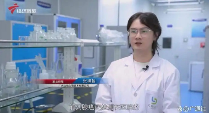 副总经理张褀晢介绍:“咱们前列腺癌症检测在医院的主流技术是PSA,但是在PSA有一个灰度区间是处于4纳克每毫升到10纳克每毫升中间。那么在这个灰度中间内呢,医院会建议患者做一个活体穿刺或者是一个影像检测。但是活体穿刺一费用贵,二是很可能会有伴随并发症的风险。那目前咱们这一个液体活检的技术可以只在抽一管血的情况下来辅助医生诊断前列腺癌症的患癌风险。目前这个产品正处于临床试验阶段,当拿到注册证之后会推向院端市场,将有望大幅度降低患者检测费用以及检测痛苦。”