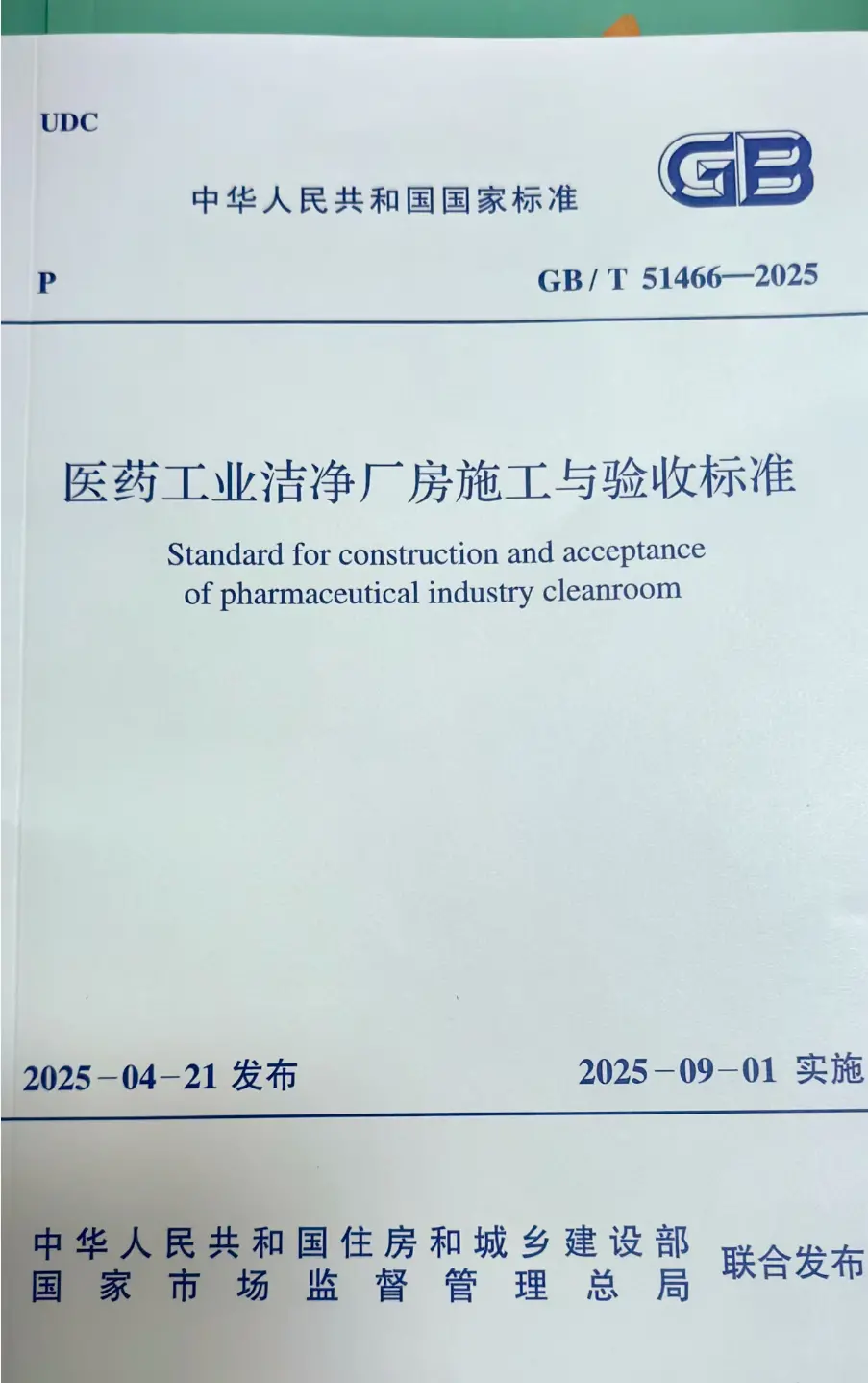 自2025年9月1日,由住房城乡建设部发布的国家标准《医药工业洁净厂房施工与验收标准》(GB/T51466-2025)正式实施。在这份为生物制药医药工业洁净厂房建设提供全面技术指引的权威标准中,一项早在2019年就已问世的创新技术 ——抗过氧化氢净化板工艺成功被纳入,其技术价值得到国家层面的权威认证,为生物制药洁净区消毒防护领域带来颠覆性的材料解决方案。