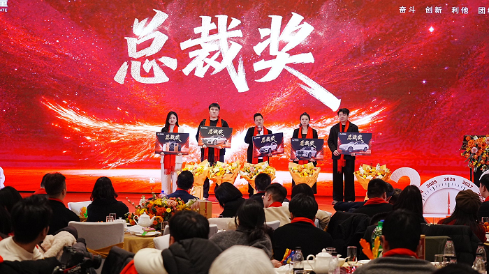 最让现场沸腾的,莫过于实打实的嘉奖环节,这也是聚量“让奋斗者共享发展成果”最直接的体现。重磅的“总裁奖”环节,王总亲自为各领域年度标杆员工颁奖,奔驰轿车、奥迪A6、小鹏汽车、比亚迪方程豹等豪车大奖搭配高端数码大礼包,让努力有了看得见、摸得着的回报。