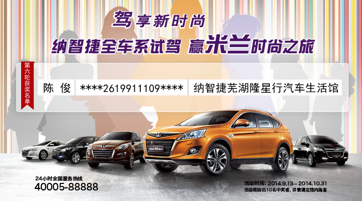 9月13日至10月31日期间,纳智捷力邀时尚模特团助阵汽车生活馆,与您一起鉴赏纳智捷的迷人魅力!