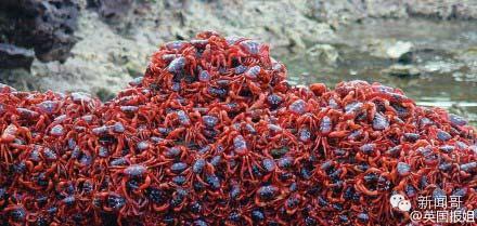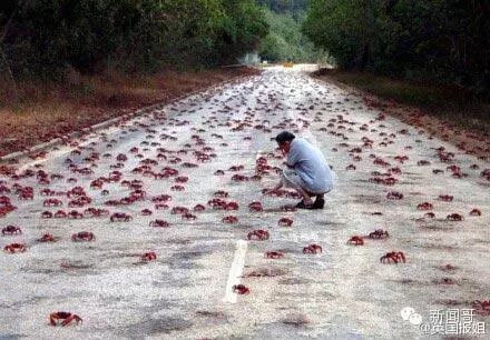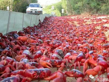 这不,已经11月下旬了,又到了澳洲圣诞岛(Christmas Island)上的红蟹大迁徙的时间,专家预计今年可能会有4500万只红蟹,在2到3周的时间内遍布全岛,目前政府已做好封路的准备。(via @英国报姐)