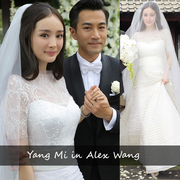 2014年1月8日,杨幂与刘恺威的婚礼在印度尼西亚巴厘岛举行。这也成为2014年第一场最受关注的明星婚礼。杨幂的婚纱由设计师好友王培沂Alex Wang量身打造,而在出设计稿阶段,她就参与给出了自己的意见。而为了让刘恺威看到穿婚纱的她时有惊喜的感觉,在婚礼仪式前杨幂对婚纱款式样子一直严格保密,刘恺威是在她出现在婚礼现场时才得以见到婚纱真容。婚纱由上万水晶点缀且都是手工缝制,所以制作周期比普通婚纱要长。据报道,婚礼的戒指、婚纱、礼服及BVLGARI B. Zero 1白金钻石手镯共计花费约人民币900万。