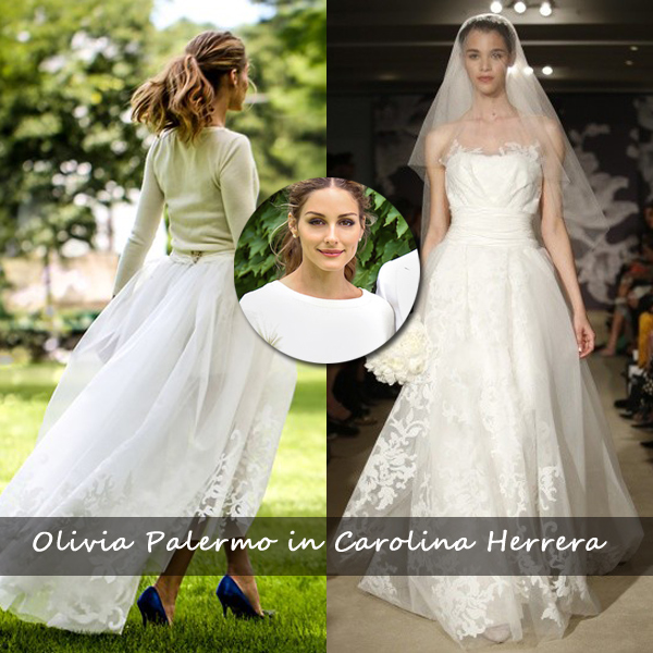 被称为《绯闻女孩》原型的纽约名媛Olivia Palermo与她的男友Johannes Huebl在纽约Bedford举行了私人结婚典礼。品味与众不同的她在婚礼上完全抛开了传统婚纱的定义,仅用一件配有鸵鸟羽毛的米色羊绒衫搭配白色短裤,再搭配一条Carolina Herrera薄纱花冠裙,最后用一双Manolo Blahnik蓝色高跟鞋作为点缀——没有奢华张扬的配件,她依然是今年最美的新娘之一。