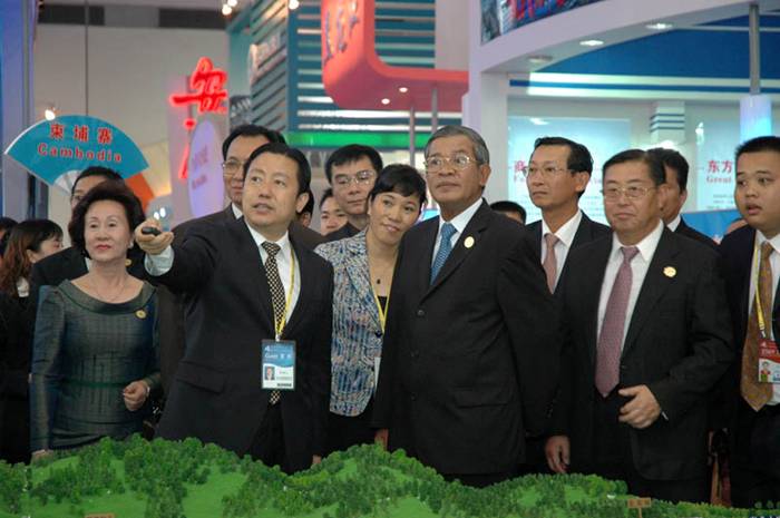 第四届东盟博览会上洪森首相亲临西港特区展位