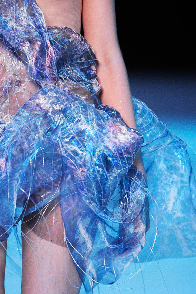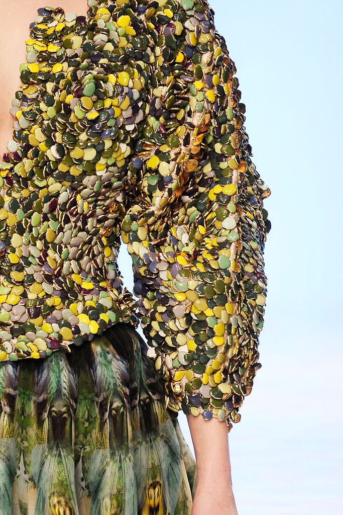 到现在我仍然清晰地记得,2010年春节的伦敦地铁报上,头版大篇幅刊登着Kate Moss等众明星将出席在圣保罗大教堂举行的Alexander McQueen葬礼。这位鬼才时装设计师于那一年的2月11日在家中自杀身亡。而那场让无数素食主义者难以接受的采用3D图案以及蟒蛇皮制作的Platos Atlantis 2010春夏系列,从此成为了绝世之作。按McQueen的逻辑,人类的祖先从海洋生物进化而来,很久以后,会再次回归海洋,整场秀散发着神秘的未来海洋色彩,毛骨悚然却又勾起观众的好奇心,无尽的想象力仿佛宇宙的黑洞一般,无法预测。