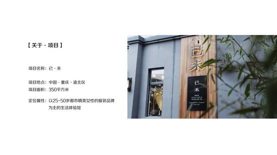 参赛项目定位是已知和未知,已知是现在的信息,未知是还未发生的未来。品牌叫《已未》,它位于山城重庆,建筑面积350平米,消费群体是25到50岁都市精英女性,打造服装品牌生活体验馆。品牌很年轻,表达出朴实、素雅、朝气蓬勃的状态。