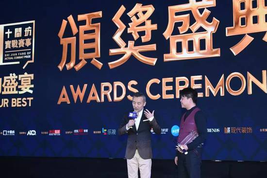 芒果奖&十间坊晚间颁奖,十间坊实战赛全国总冠军花落谁家,牵动着评委、设计师和全场观众心弦。“十间坊实战赛6位选手一路披荆斩棘,从海选、工地实勘/图纸指导、中期验收、摆场拍片、策展、登台演讲,层层考验,谁又将站上今年中国实战设计大奖的领奖台呢,你猜,刚才台上6位谁是总冠?马上揭榜。”主持人2015实战赛全国总冠军王华方说到。