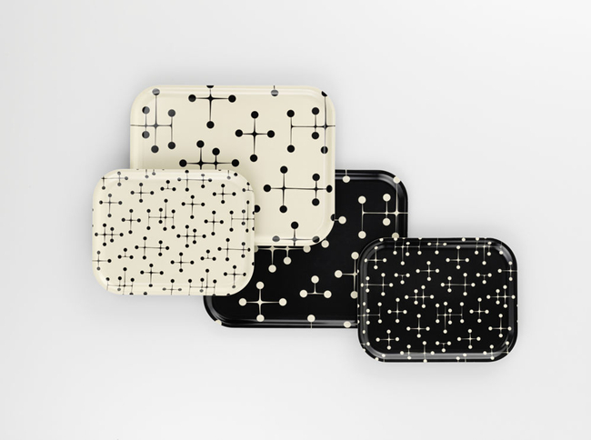 款式经典的托盘由层压胶合板制成,Girard创造出各种图案,但是在1947年CharlesandRayEames创造了波点的款式,并将该元素延伸致靠垫、毛毯和垫子等,并在1949年获奖。