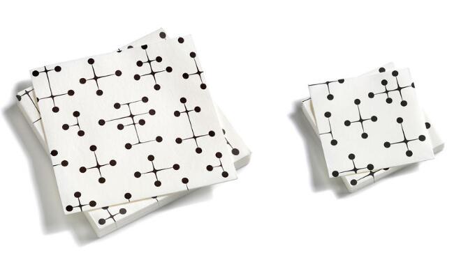 正如波点托盘一样,波点餐巾纸也被创造于1947年。可以说,他们的创意是当时的一股奇特力量。设计师AlexanderGirard和Charles&RayEames都是美国设计界的领军人物,Girard专注与纺织设计,这也是他在家具设计领域才能的展示。他们三个人的作品并不局限于产品设计、建筑、展览设计和摄影等。