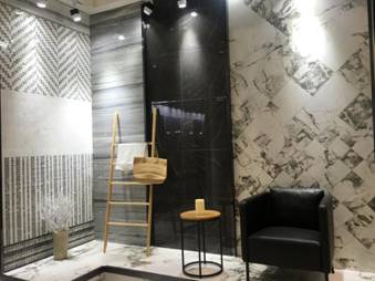 Coverings展位外立面设想采用橱窗式表达,国际支流的白灰色系混铺,分歧尺寸分歧产物的搭配延展大理石瓷砖美学。交织的希腊伯爵白矗立其间,致敬“一带一”沉点工程地标-国际会展核心。半的外立面,吸引了浩繁宾客目光,停下脚步一探事实,又能彰显简一OPEN的公司空气。