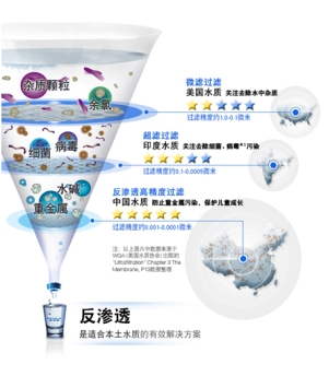 正如中消协提醒,“微滤、超滤、反渗入三种清水器中,反渗入清水器的过滤结果好,能够实正滤除沉金属,让饮水变得更平安”。由于反渗入清水机的焦点部件是反渗入膜,这层膜的孔径只要0.0001微米,能够无效将量200-100的沉金属等离子类杂质成功滤除。数据显示,反渗入清水机市场拥有率截止2016岁尾已达74%,同比增加43.3%。A.O.史姑娘的反渗入清水机目前已达到市场拥有率第一,被消费者普遍承认。