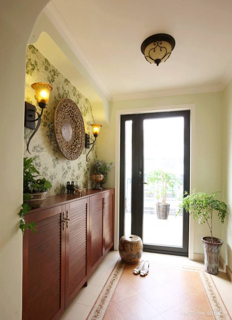 6、玄关的墙面好以中性偏暖的色调,能给人一种温和、舒服之感,让人很快忘掉情况的纷乱,体味抵家的温暖。做玄关正在考虑到功能性的同时,性也不容轻忽。哪怕是一盆小小的雏菊,一幅家人的合影,一张颇成的风光画,就能为玄关衬托出一种凡响的结果。