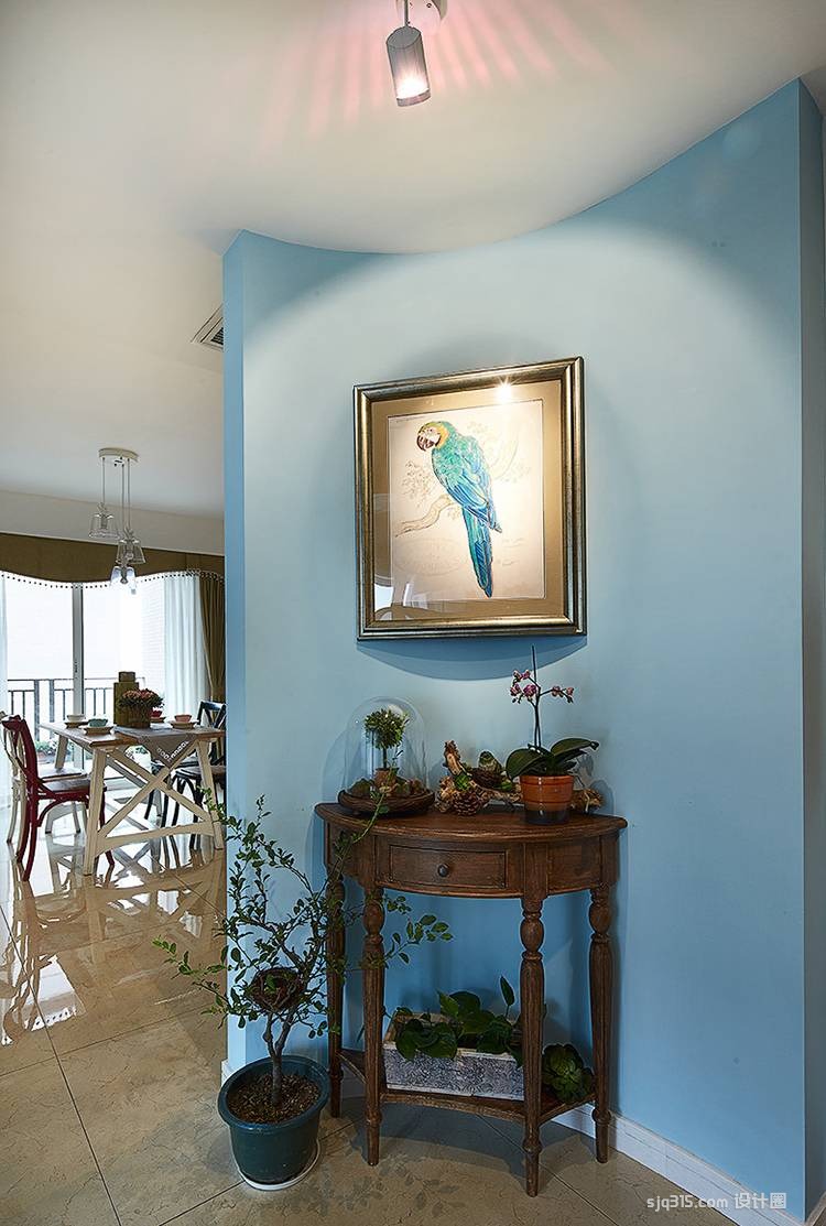 3、客堂玄关的采光宜明不宜暗,而大部门室第的玄关,都没有天然光源,因而正在采光方面必需多动脑筋。除了间隔宜采用较通透的磨砂玻璃之外,客堂玄关大多没有室外的天然光, 便要用室内的灯光来解救,例如安拆灯之类的。