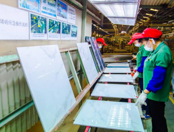 为确保产物的不变性,产物从原材料、砖胚,到施釉、抛光等整个出产过程的每个环节都设立产质量量系统,每个环节、每道工序都必需颠末多沉的检测,建起道道质量平安防地,而且实行新产物片片检测,成熟产物每五片抽检一片,实现全从动检测取人工检测双沉包管,确保每一片瓷砖都达到国际尺度。