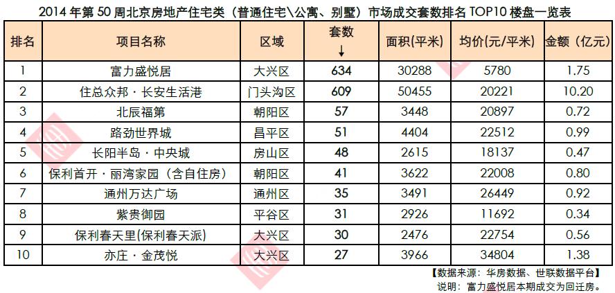 第50周北京成交套数TOP10楼盘总成交套数1563套,占北京全市第50周成交套数的59.84%,较上周上升32.01个百分点。