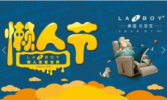 十一长假匆匆而过,很多朋友都是感觉意犹未尽啊。再看看接下来要连续上班三个月,假期更是貌似“遥遥无期”。这么漫长的三个月,中间的确需要有个节日来过度一下。这不,懒人节迅速通过网络崛起了,而且花样百出,深得人心。提到懒人节,LAZBOY乐至宝这个名字便自然而然的从脑子里蹦出来了,这是为何呢?一个美国的百年大牌,到底与懒人节有何关联呢?个中缘由,且等下文详述。