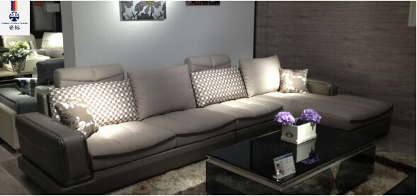 这款沙发(沙发装修效果图)主面料由超柔印花面料+超纤皮组成,超柔印花面料密度较高,触感细腻、舒适。而沙发外围和底座由超纤皮制作,超纤皮是目前最好的再生皮,其耐寒、透气、耐老化等特性让产品更加耐磨、耐脏,便于打理。