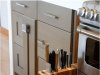 超强储藏室。对于那些烹饪达人和爱好者来说,各种烹饪的调味料是必不可少的,如果你不希望它们暴露在外面显得杂乱无章,或者是占用橱柜的空间,那不妨在冰箱边上定制一个这样的多层推拉抽屉,任你再多的瓶瓶罐罐也能放进去,而且每次从冰箱拿出食材的时候,顺手就能拿出烹饪所需的调料了。