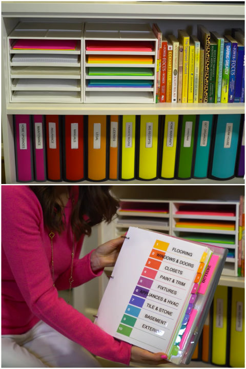 5、多设置一些标签。很多人在家里面经常会找不到一些账单或是重要的文件,如果你想解决这个问题,那不妨学下Alejandra,将不同盒的文件用彩色的贴纸进行区隔,然后在上面标清楚里面存放的文件类别。她甚至自己装订了一本书,里面用彩色的卡纸来对某一类的文件进行区隔,然后再封面上标清楚不同颜色卡纸之间代表的是哪些文件,真的太细心了。