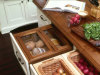咖啡收藏区。便捷又美味的K-Cup咖啡已经渐渐占领了欧美地区的主流市场,所以这样的抽屉也应运而生,上方的推拉板用来收纳不同口味的咖啡速溶杯,下面则放入各种喝咖啡的工具。如果你不喜欢咖啡,换成其它东西收纳也很不错。