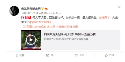 (原标题:方太双十一上演火炬接力体坛明星助阵燃起32城战火)