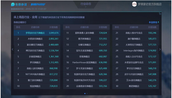 成功是留给有准备的品牌,11月11日零点一到,天猫罗莱家纺官方旗舰店华丽登场,销量一开始就呈现井喷式增长!在00点7分58秒,成交额达1000万!在1小时内罗莱家纺官方旗舰店单店销售直击4000万。根据生意参谋统计,上午7点40分,LOVO品牌势如破竹销量已突破1亿,在销售表现上把竞争品牌远远地甩在后面,稳居天猫家纺类目第一!截止发稿,数据还在不断攀升中。