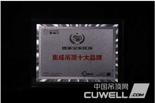 (原标题:德莱宝家居顶荣膺“2016年度集成吊顶十大品牌”称号)