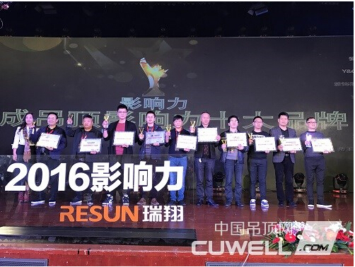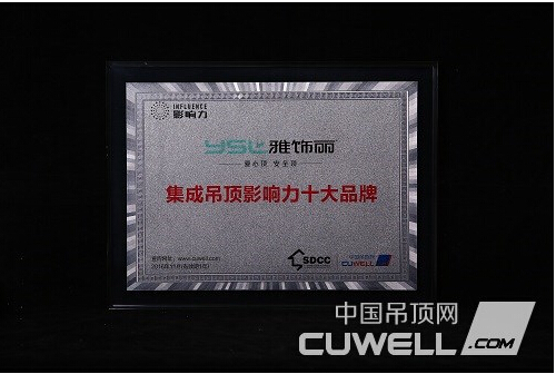 (原标题:雅饰丽全屋集成吊顶荣获“2016年度集成吊顶影响力十大品牌”)