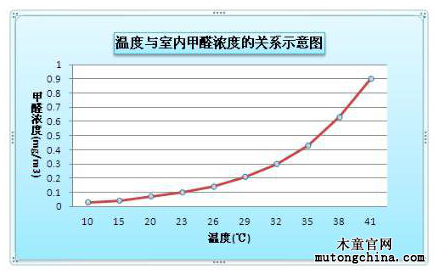 据日本科学家测算,温度每升高1,室内甲醛浓度增加12-13%。例如23时,甲醛浓度是0.10毫克,30时,甲醛浓度将达到0.22毫克,35时,甲醛浓度将达到0.41毫克。温度与甲醛浓度的示意图如下: