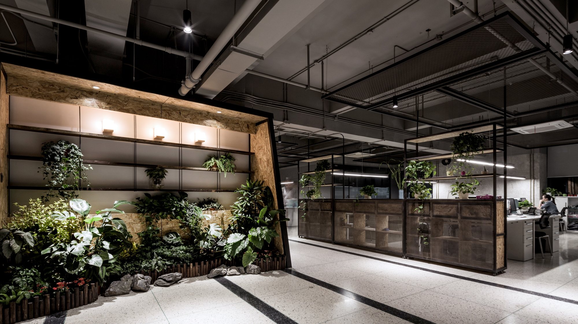 “我们对空间进行了整合,在管理允许的基础上开放了几处房间作为公共区,将前台,贩卖机,休息区等功能安插进去,消除了部分闭塞感和单纯作为交通的单调感;同时,将一些零散的储藏空间结合工作台面布置在走道相对宽的区域,方便使用。而多种隔断墙体形式在室内不仅要回应人的需求,更要积极担当人与人,人与环境之间的媒介。”姚路说,“未来办公空间的目的,是在人(既员工)、组织及环境之间建立平衡而又充满生机的关联。”