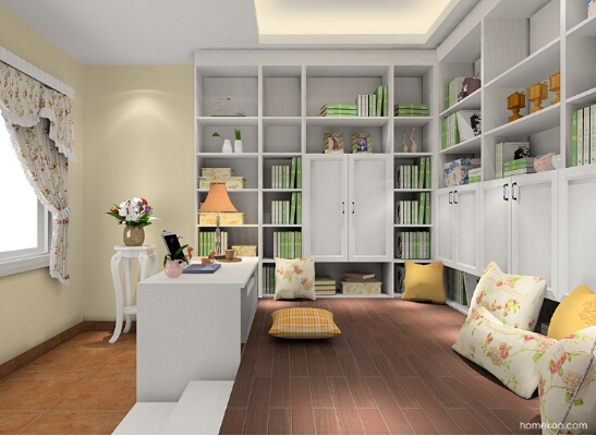 最浪漫的事就是工作累了可以随意小憩,尚品宅配设计师在房间的细节设计上,榻榻米具备了两用性,她不但是一张沙发(沙发装修效果图),也是一个喝茶看书的休闲间。书桌(书桌装修效果图)巧妙地与书柜(书柜装修效果图)拼接,再搭配双人办公凳子,舒适清新的SOHO工作区马上完成。