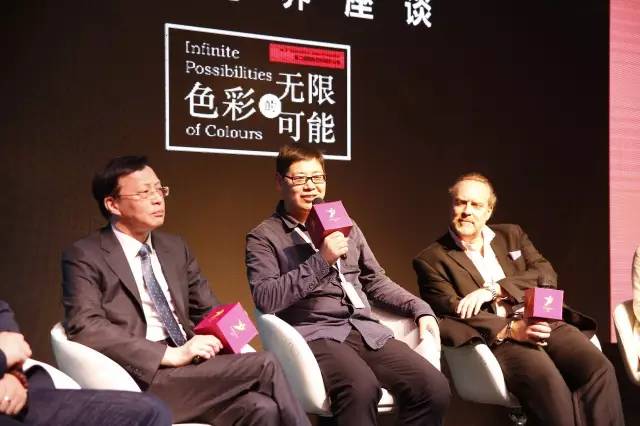 三位设计大咖的精彩演讲结束后,主持人严巍先生邀请了几位色彩专家共同参与“色无界——色彩跨界座谈”,iColor家居设计服务平台CEO陈庆辉先生、华为CMF技术专家郜成杰先生以及国际色彩专家、NCS色彩学院院长、NCSColour副总裁Mr.KarlJohanBertilsson(卡尔?约翰?贝蒂尔森)先生、多乐士专业工程渠道高级色彩经理郦晓玲女士、Colourinsight色哲服务机构色彩专家张嵘女士共同出席,分别就色彩潮流和趋势、色彩对城市同质化的改良、设计师平台等相关问题为现场观众展现一场极富思辨精神和指导意义的头脑风暴。