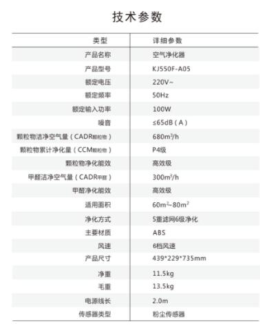 在机身正面外壳上方有一块液晶显示屏,通过机身侧面的温/湿度传感器、灰尘传感器和TVOC传感器,把房间内的空气、湿度、PM2.5值、气味监测值等数据显示出来,让用户直观的看到房间内的空气环境质量情况。