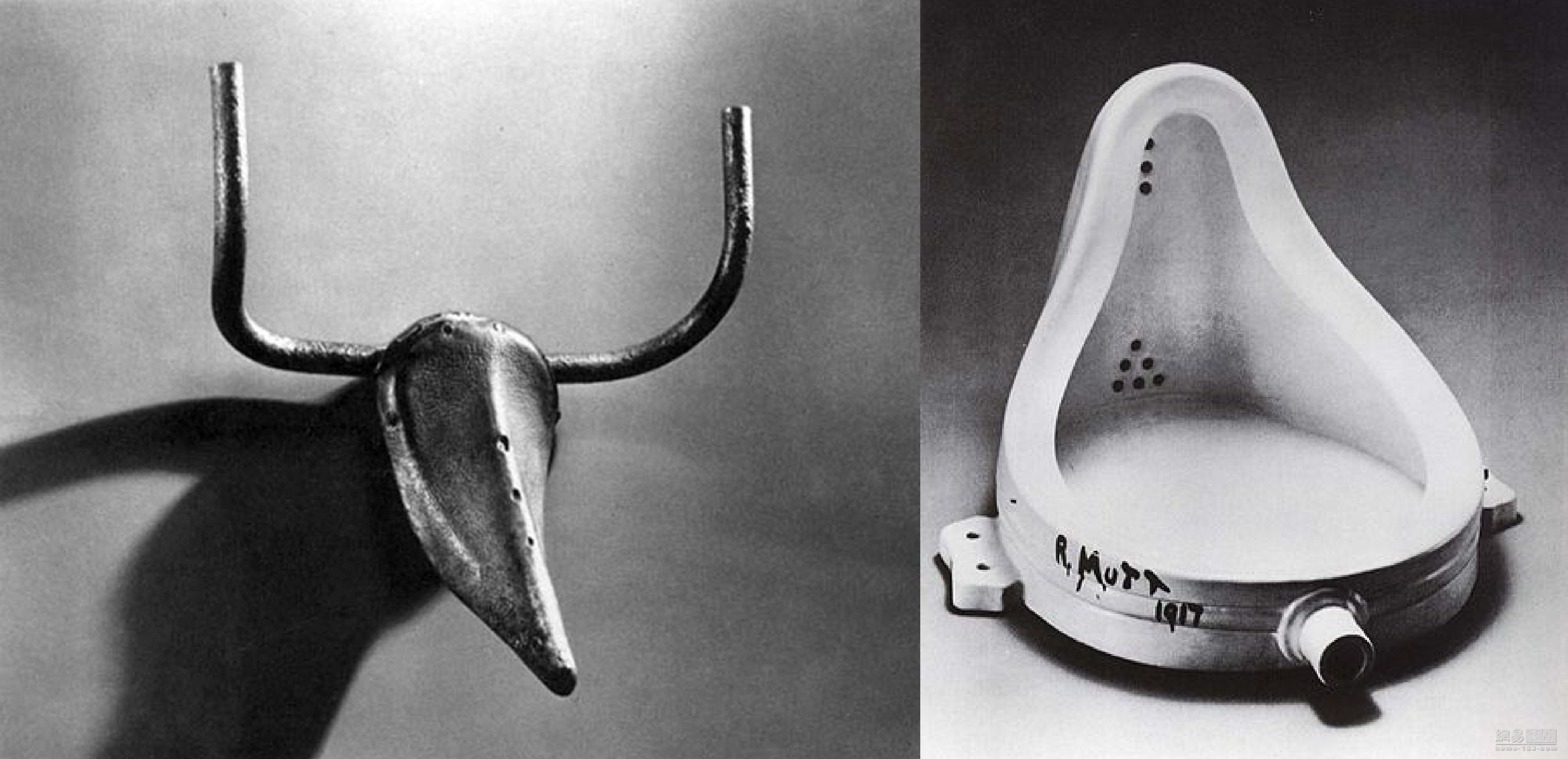 利用现成物做为元素,转移至空间之中,是美籍法裔艺术家马塞尔?杜象(MarcelDuchamp)拿手把戏,像他利用脚踏车零件做成的一只牛像。另外,于1917年,他把一个现成的小便斗翻转90度,脱离其原本功能性,在表面写出“R.Mutt1917”标示,以此确认其艺术定义,摆进现代艺术展览上,想法大胆。