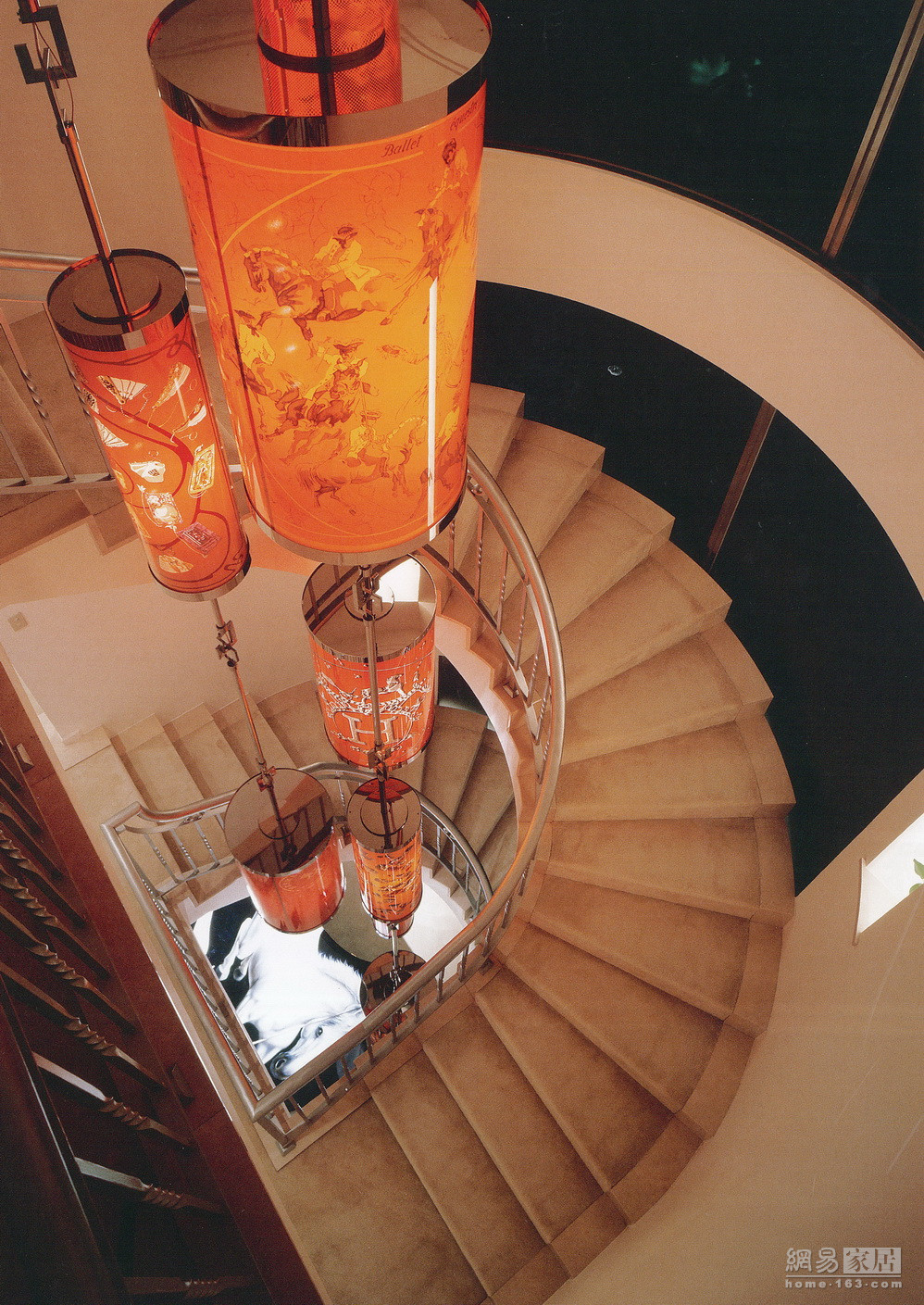 楼梯间也有以Hermes丝巾作为灯罩的吊灯,一楼钢琴也特别烤漆与细致雕刻。书房内堆满杂志、画作、海报与照片,全以展示方式陈列,俨如是一个收藏馆一样。从这些细节可见,森田恭通非常沈溺于奢侈浮华的环境里,但这也令他格外了解人的心理欲望。