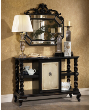 黑色最能显示现代风格的简单,另外,白色、银色、灰色亦能展示出现代风格的爽快与冷静。而现代风格的另一项用色特征,就是使用非常强烈的对比色,创造出一种特立独行的个人风格。这款臻品的收纳柜/鞋柜,纯黑的外表、流畅的线条勾勒出高贵大气的造型,仿古镜与仿古的花窗格图案相遇,带来视觉冲击同时也体会一份优雅,品味一种气质,塑造令人赞叹的温馨精致生活。