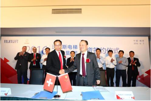 2016年6月7日,沃克斯电梯与世界电梯业巨头——瑞士迅达集团正式合资合作,成为电梯行业的美谈。据了解,迅达集团成立于瑞士,具有140多年的发展历史,是全球第一大自动扶梯生产商。而沃克斯电梯1978年生产出第一部电梯,历经三十多年磨炼,质量和技术均处于中国电梯制造业领先地位,成就中国十大电梯品牌。合资后,双方将在多个领域深度合作,实现“优势互补、合作共赢”。