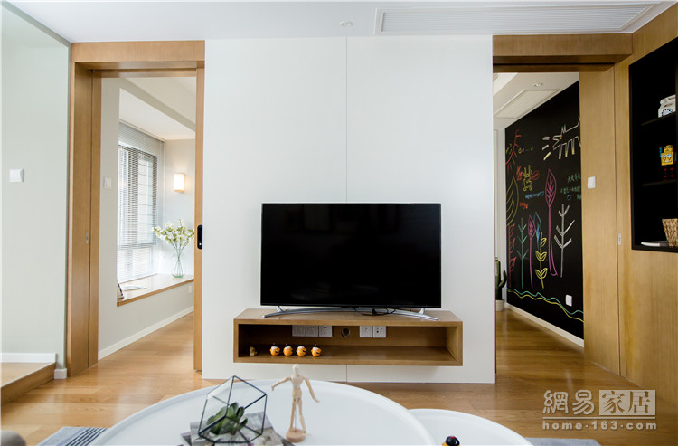 考虑到客房利用频次不高,做为常规房间实正在是太华侈了!所以设想师就正在布景墙上大动心思,将本来的隔墙四等分,然后将移门完全躲藏进布景墙中,日常平凡形态就是打开让两个空间互通,当前有小孩能够跑来跑去,空间更大。